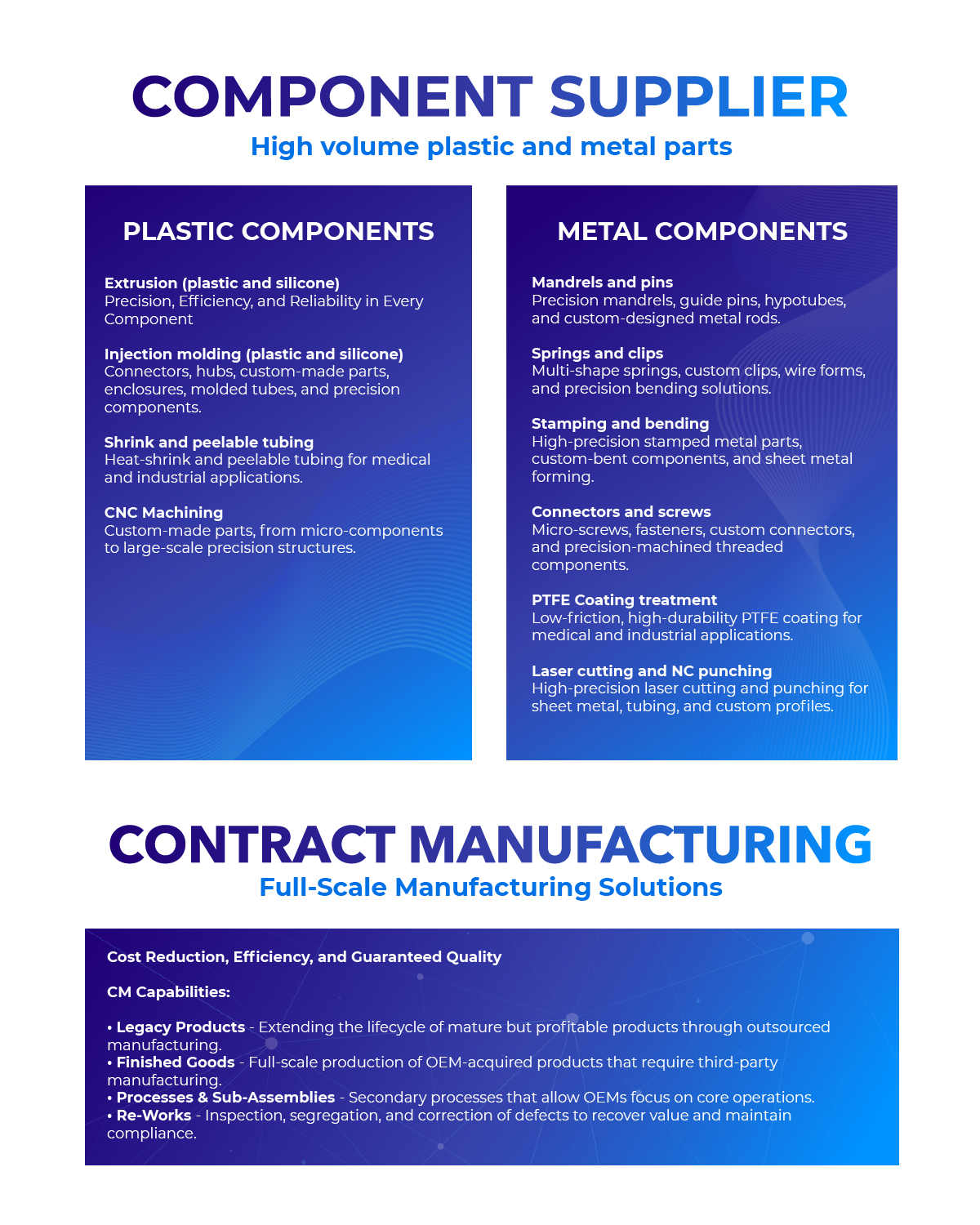 By entrusting us with your manufacturing needs, your company can focus on key areas like research, development, marketing, and sales, while our team of experts handles the manufacturing process with the utmost efficiency and quality. Leverage our knowledge and experience to enhance your business value and ensure success in the competitive medical market.