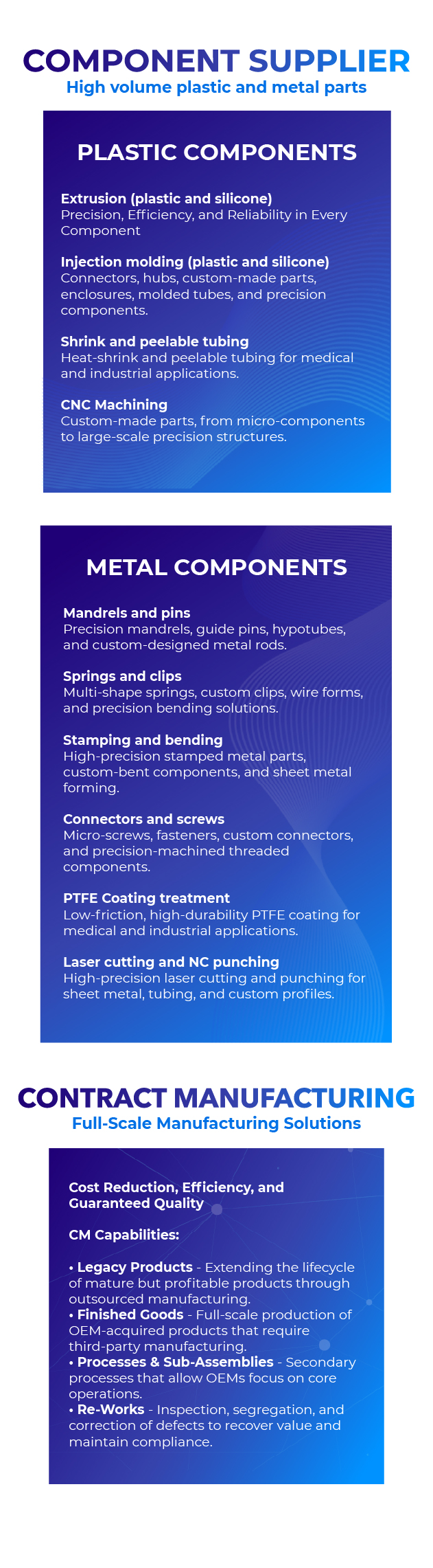 Our expertise and capabilities in manufacturing high-quality, reliable metal components ensure that they meet the medical sector's rigorous demands and stringent regulations, promoting safety, efficiency, and reliability in various healthcare applications.
